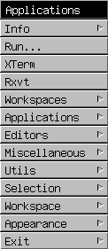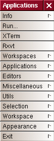 having problems. X has been hit with, as someone recently so eloquently put it, "an ugly stick." As soon as I change anything in the setup -- number of desktops; background -- it reverts from its beautiful normal self (fig. 1) to its new, Ugly-Stick self (fig. 2). Below are sample menus to show the difference.