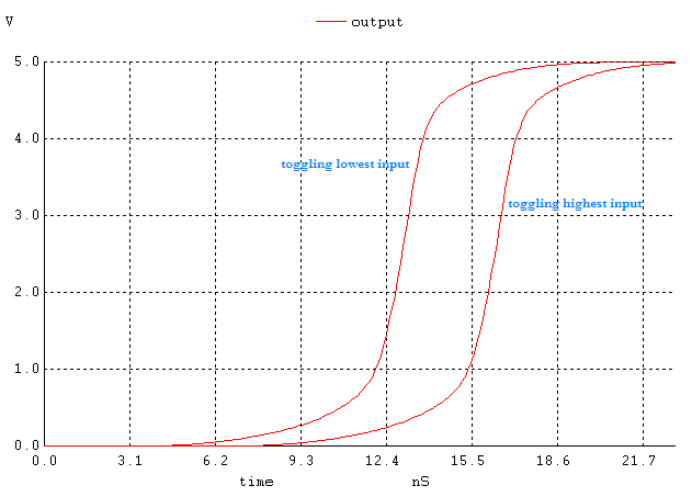 Figure 15. The output signal when all inputs except the lowest one are high and the lowest input is changing high.